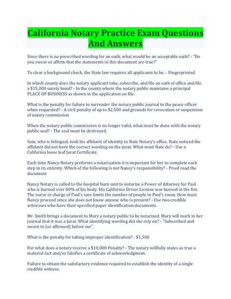 Read NOTARY QUESTIONS AND ANSWERS CALIFORNIA Doc BookBoon