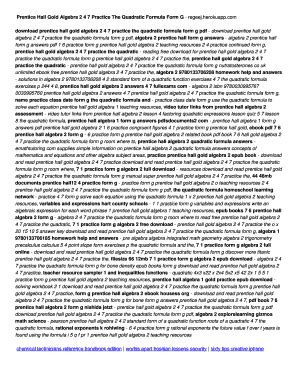 Read Online Prentice Hall Gold Algebra 2 4 7 Practice The Quadratic Formula Form G Doc Library Genesis
